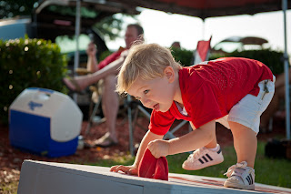 Aunt Kylie and Uncle Kyle were so sweet and invited us to go to the game on Saturday.  This was Dylan's first football game so I didn't really know how he would react to the crowd, noise, fireworks, etc but he LOVED it!  We tailgated from about 4:30-6ish and then headed to the game.  We scored two touchdowns in the first few minutes and he totally fed off the noise and was cheering and screaming!  We made it until halftime and then we headed home.  We can't wait to go back for the next game!